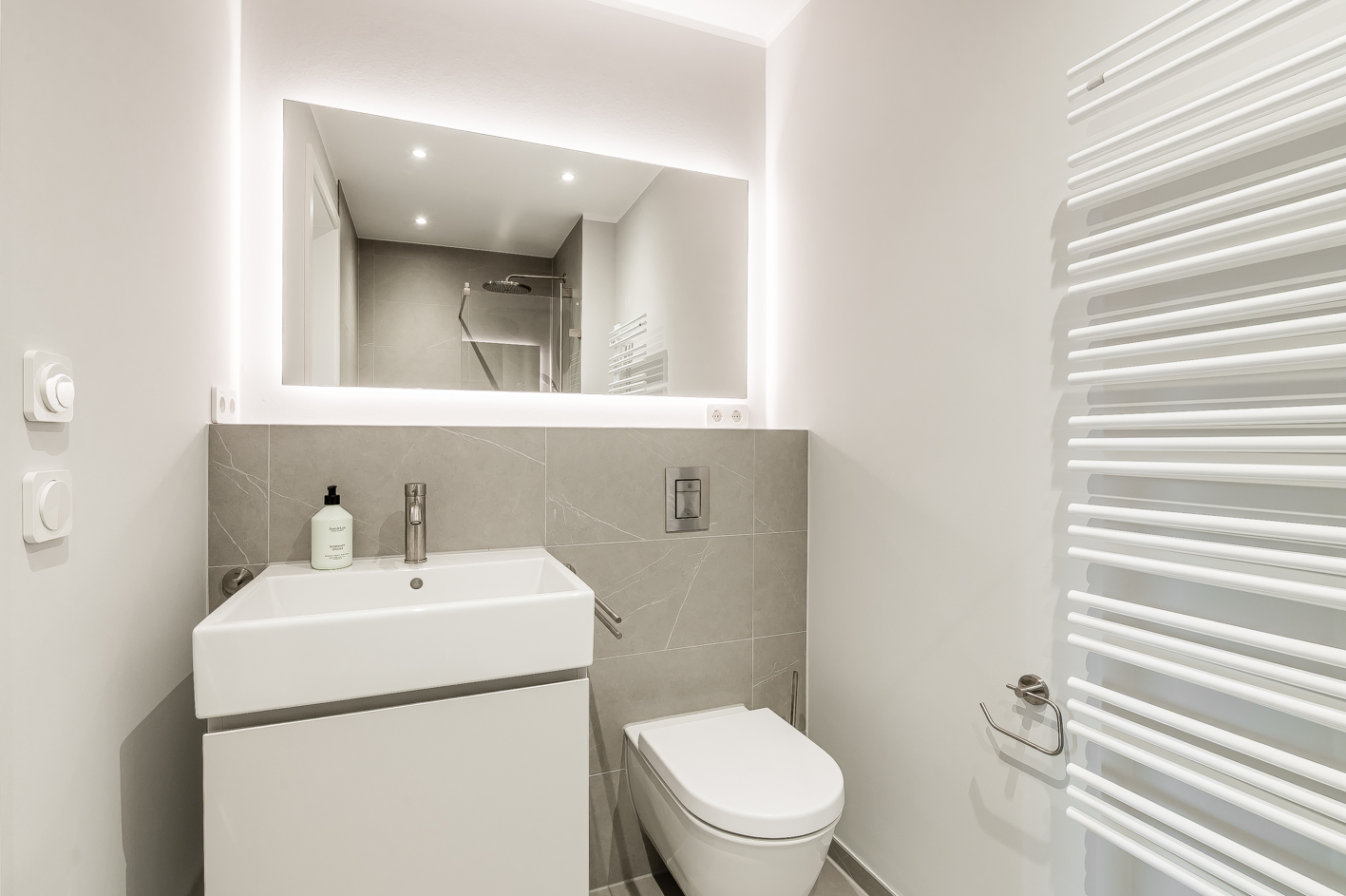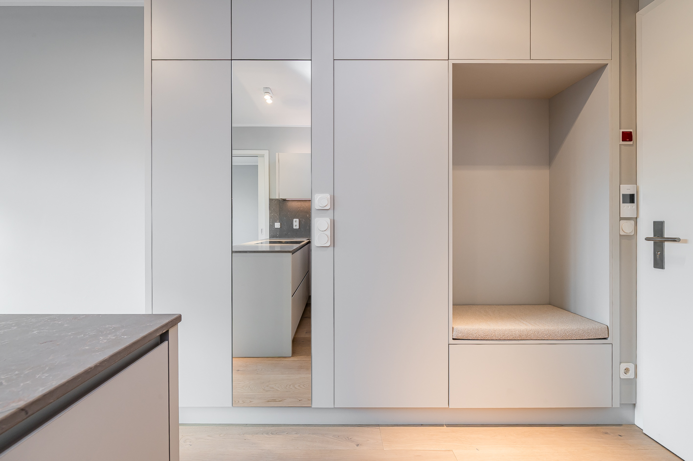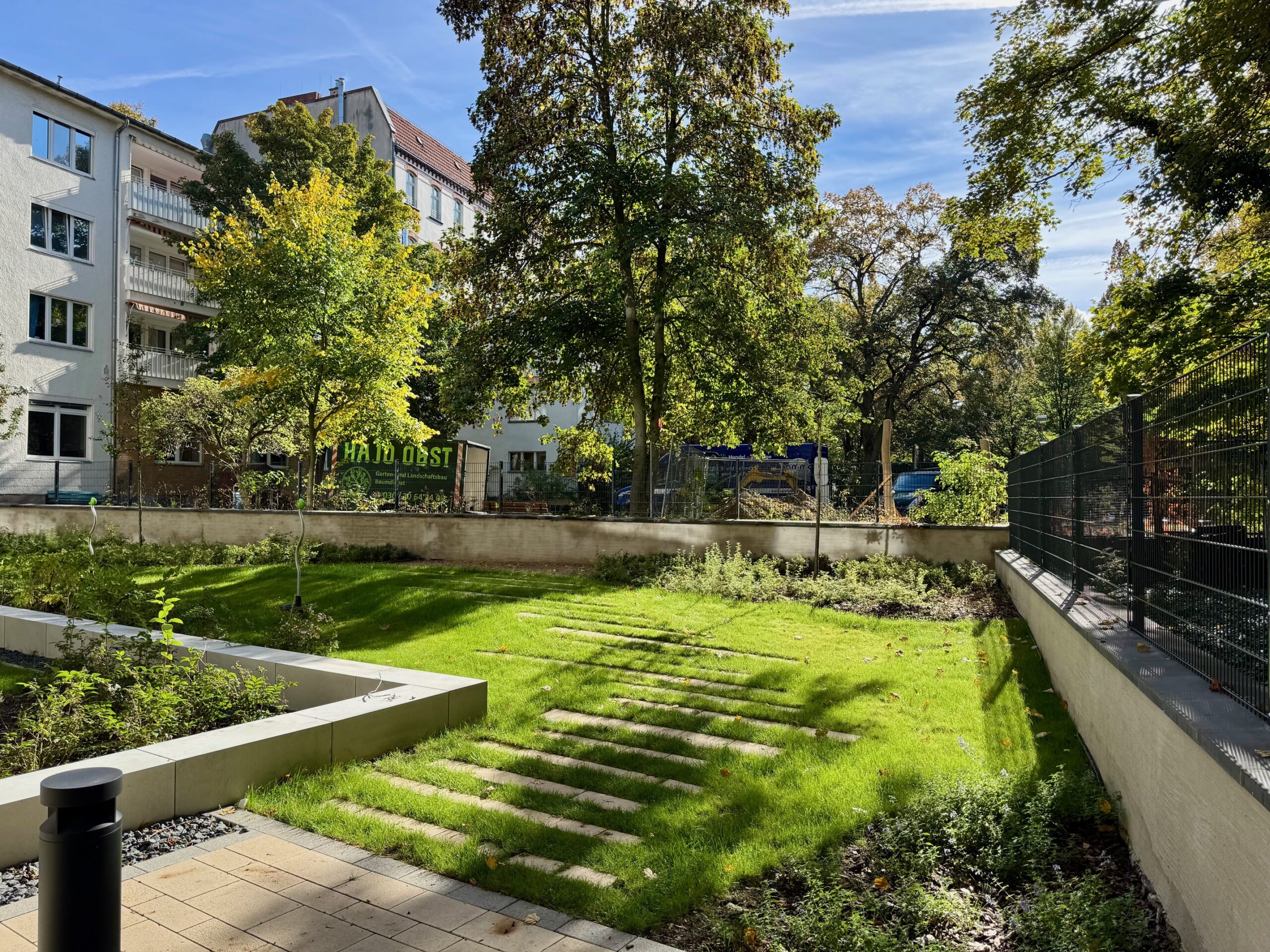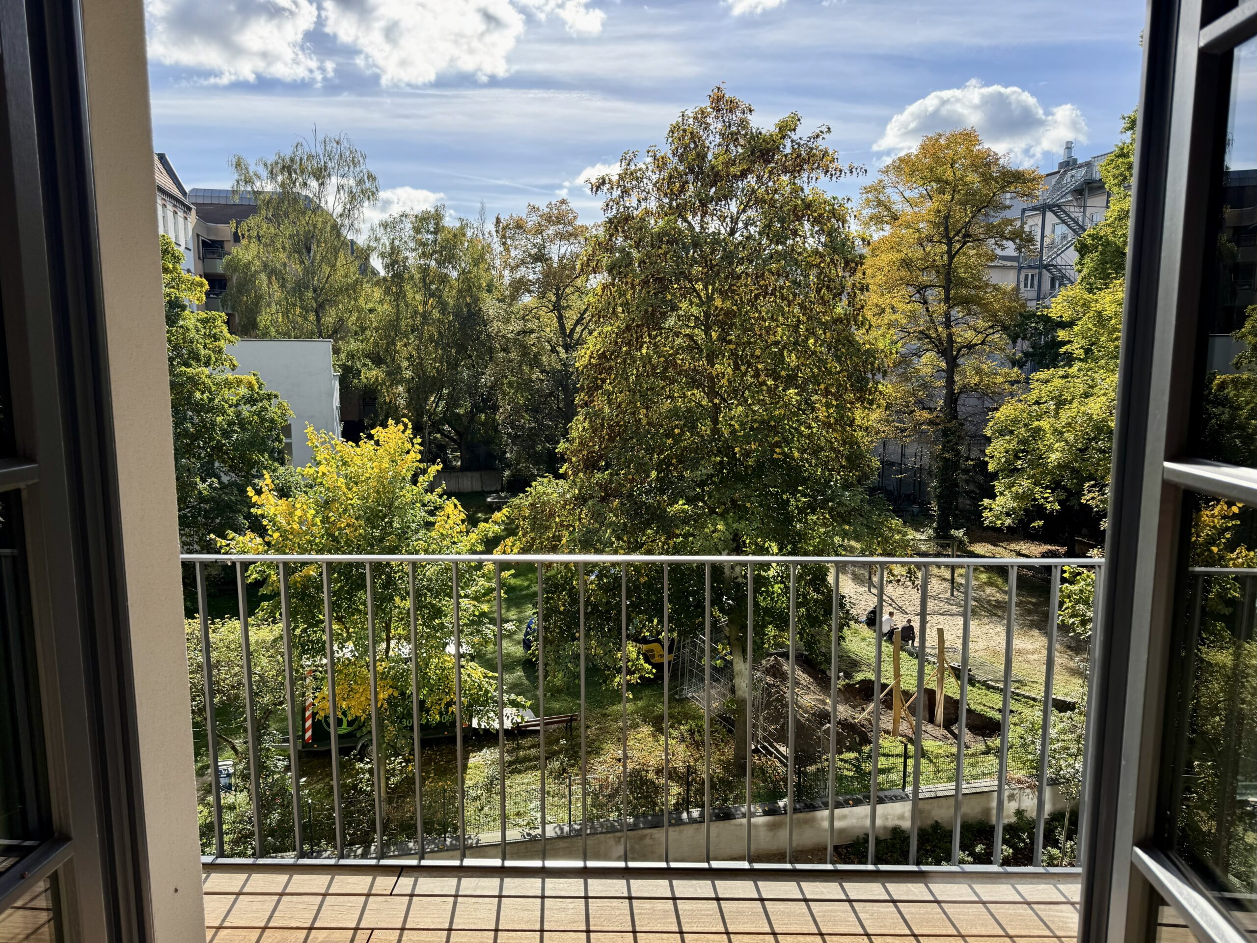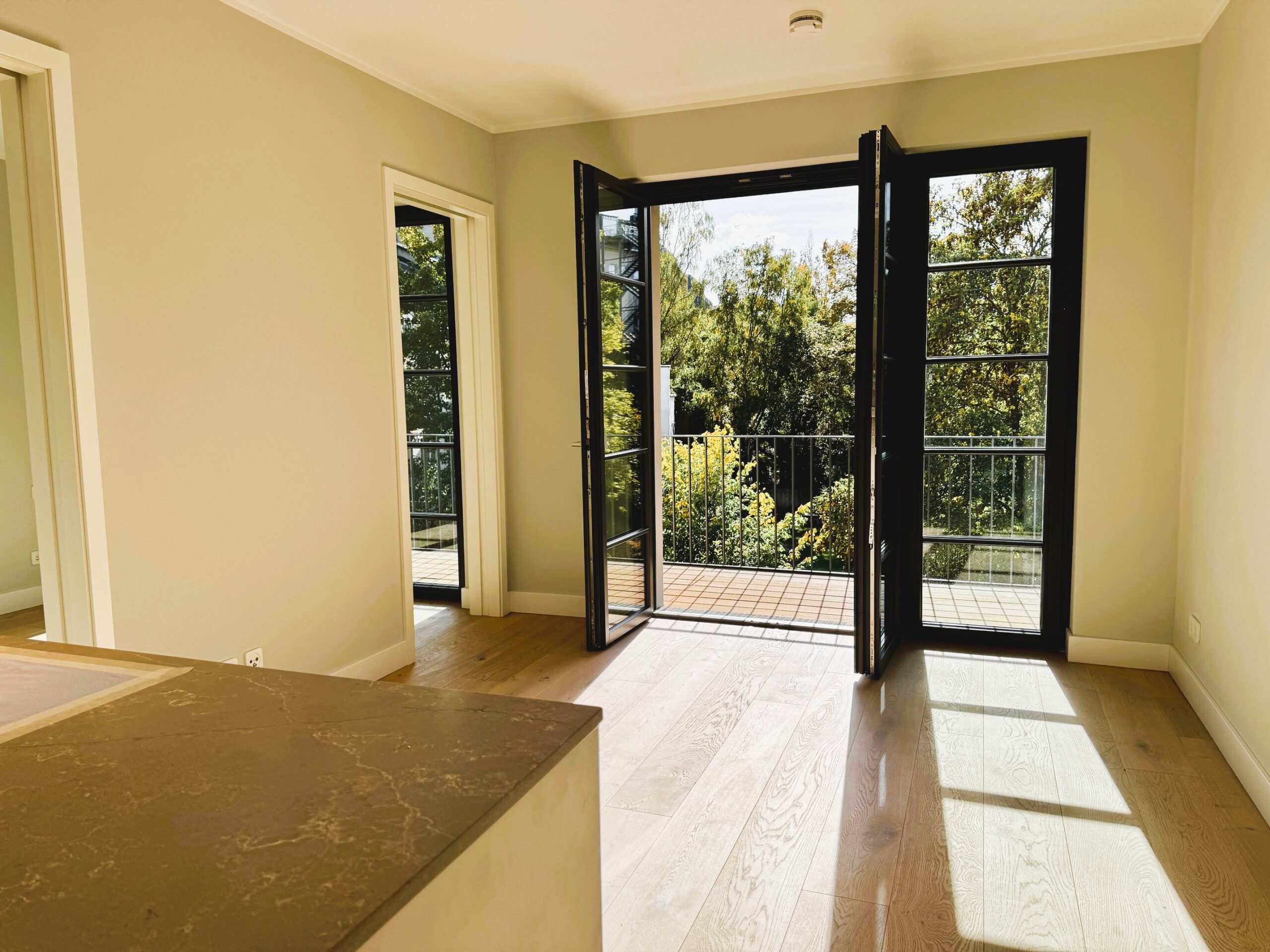 The light-flooded apartment is located on the south side of the building on the 2nd floor and boasts a fantastic garden view. The custom-made kitchen is equipped with a Bora induction hob, among other things, while the built-in cupboards and wardrobes in the entrance and sleeping areas offer well-designed storage space. Thanks to underfloor heating and cooling, the flat can be kept at a comfortable temperature all year round. The flat is accessible via two lifts without any thresholds.
