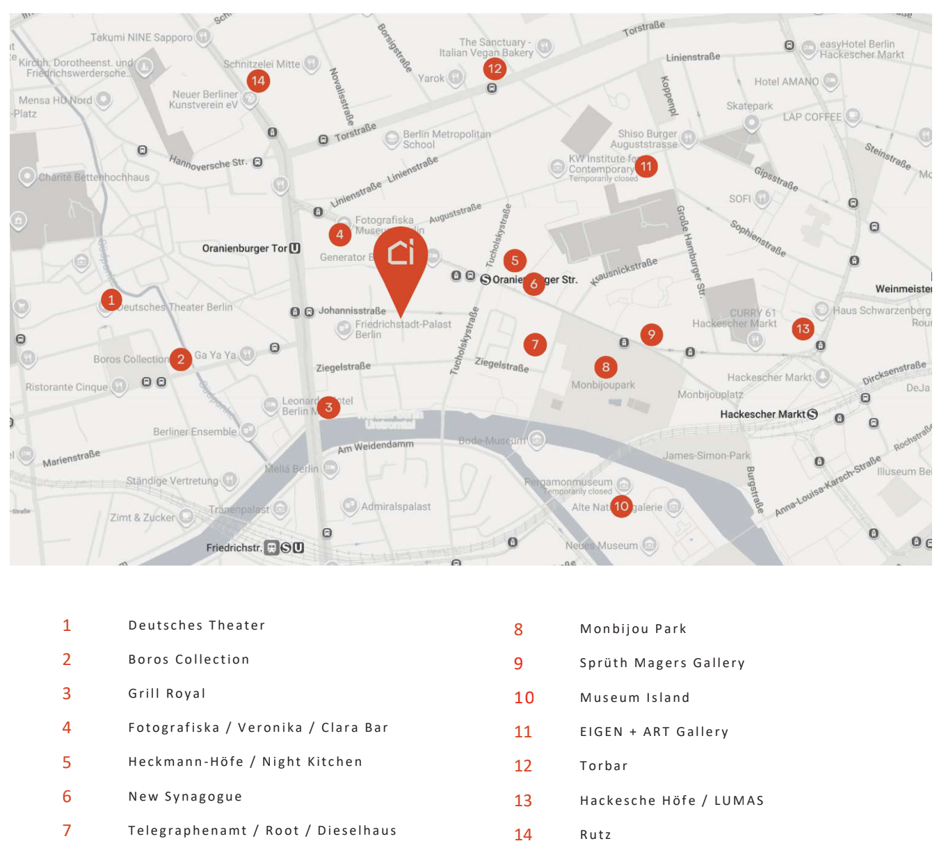 The mixture of historic buildings, culinary diversity, top-notch galleries and a highly central location make the area around Johannisstraße in Mitte one of Berlin’s most exciting places to live, even more so due to the completion of the adjoining new city quarters around the former telegraph office and the old Tacheles building. But even though sights such as Museum Island are literally around the corner, the apartment’s micro-location is surprisingly quiet.