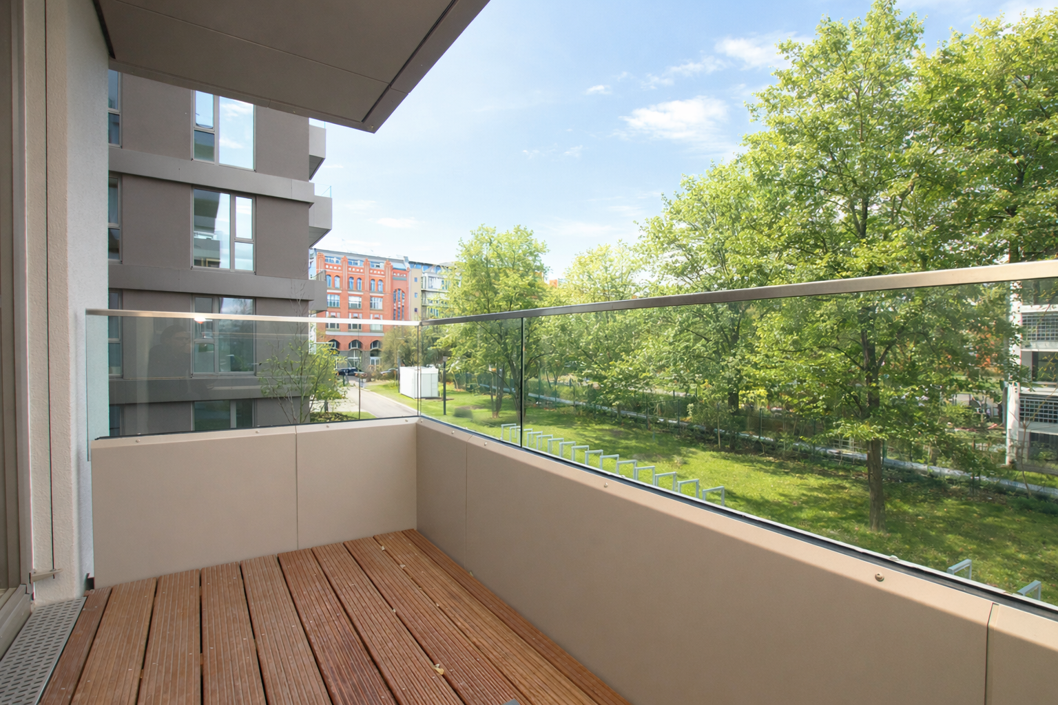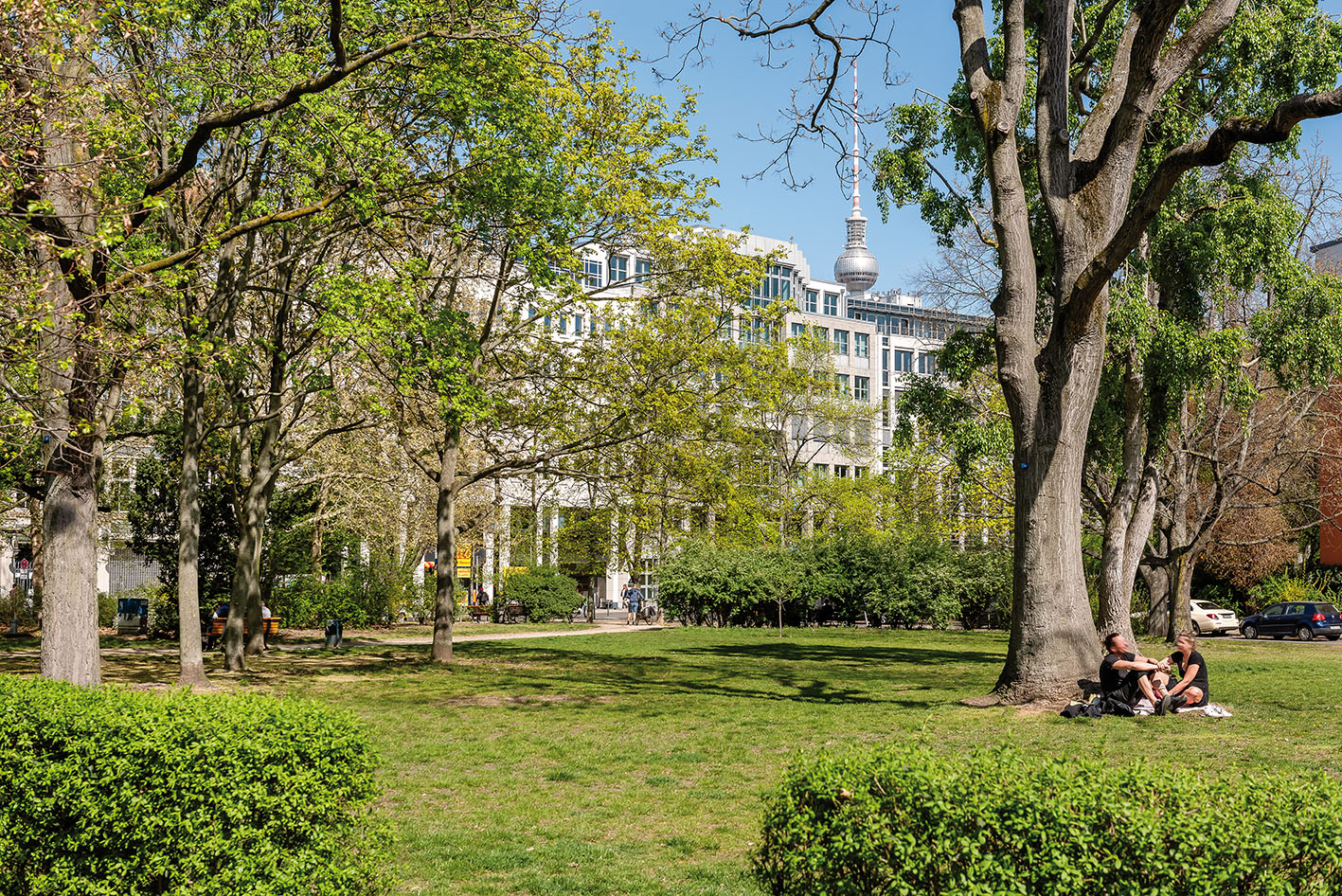 Eine 47 m² große 2-Zimmer-Wohnung mit Balkon und Parkblick wird in Mitte in einem 2019 nach Plänen von Grüntuch Ernst Architekten fertiggestellten Neubau zum Kauf angeboten