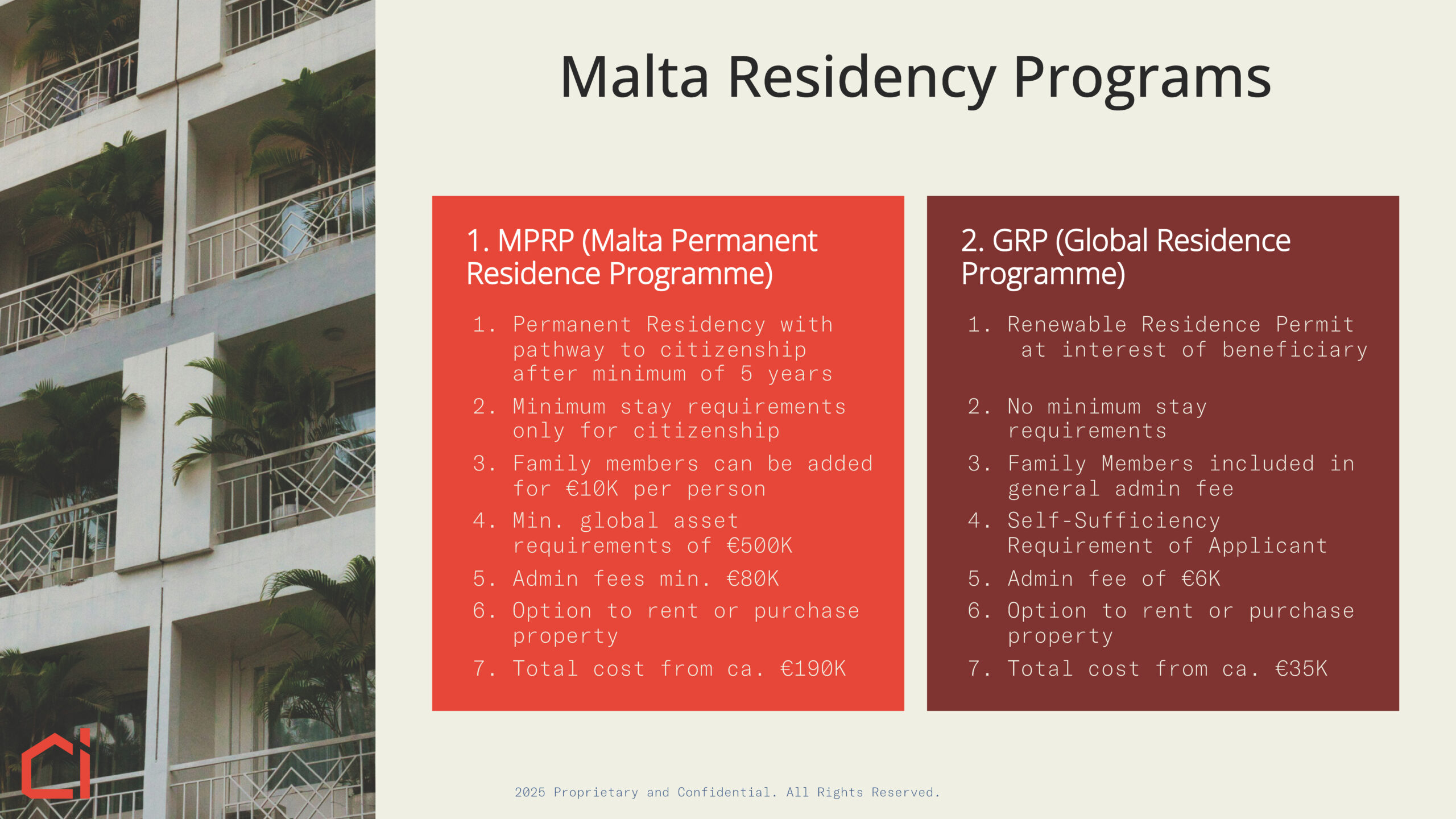 - Residency in Malta: simple, secure access to the EU without relocation requirements.